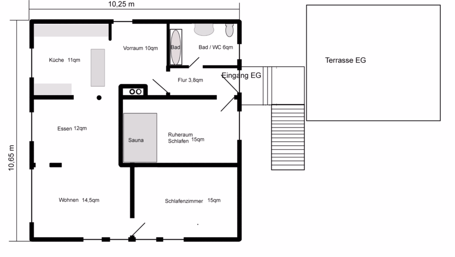 EG: ca 90 m², großer Wohn-Essbereich mit Küche, 2 Schlafzimmer, Bad, Zugang zur großen Terrasse, weitere Terrasse auf Garagen denkbar.