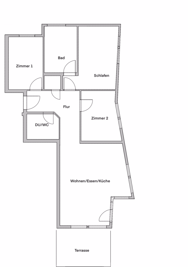 Zimmeraufteilung: 4 Zimmer – Wohn-/Esszimmer mit offener Küche (ca. 30 m²), Master-Schlafzimmer (ca. 16 m²), Kinderzimmer (ca. 11 m²) sowie ein Büro (ca. 10 m²)