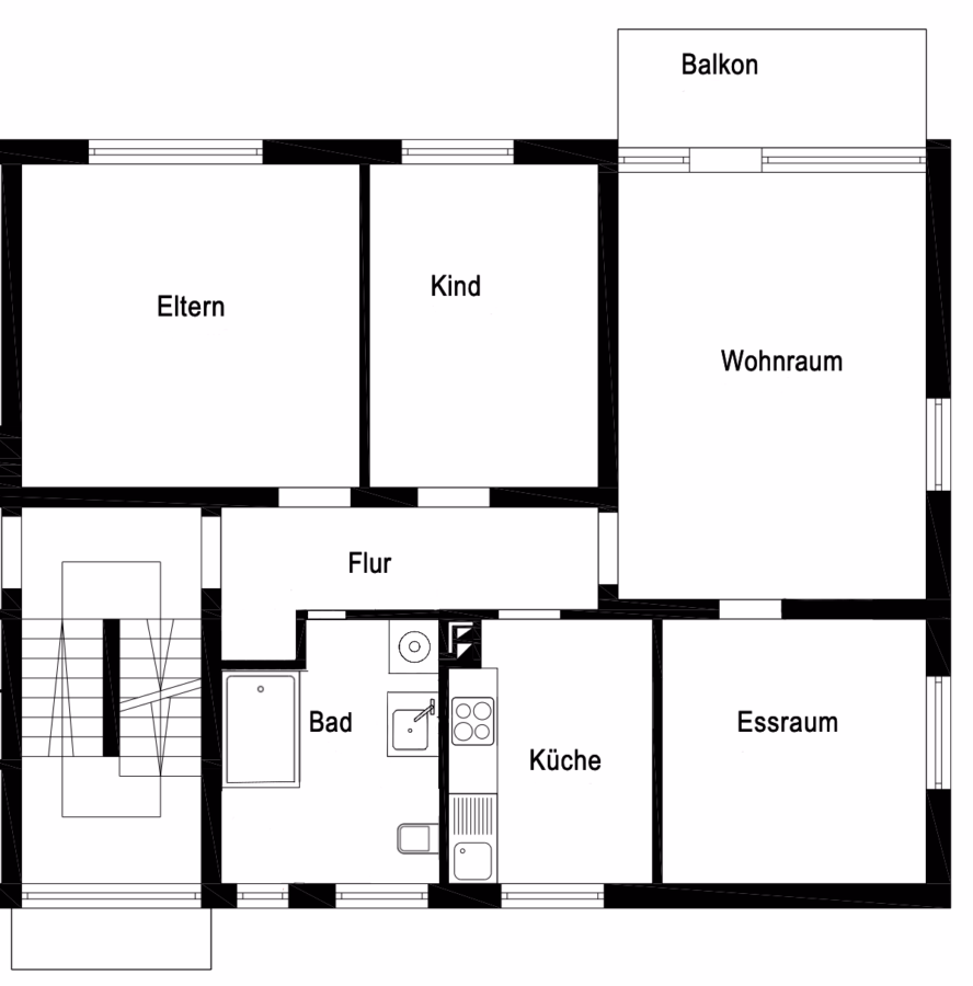The completely renovated 4-room apartment on the 2nd floor of a well-kept 6-party house not only impresses with its practical floor plan with a large living room, 3 bedrooms, kitchen and large bathroom. It also offers plenty of light and a quiet location.